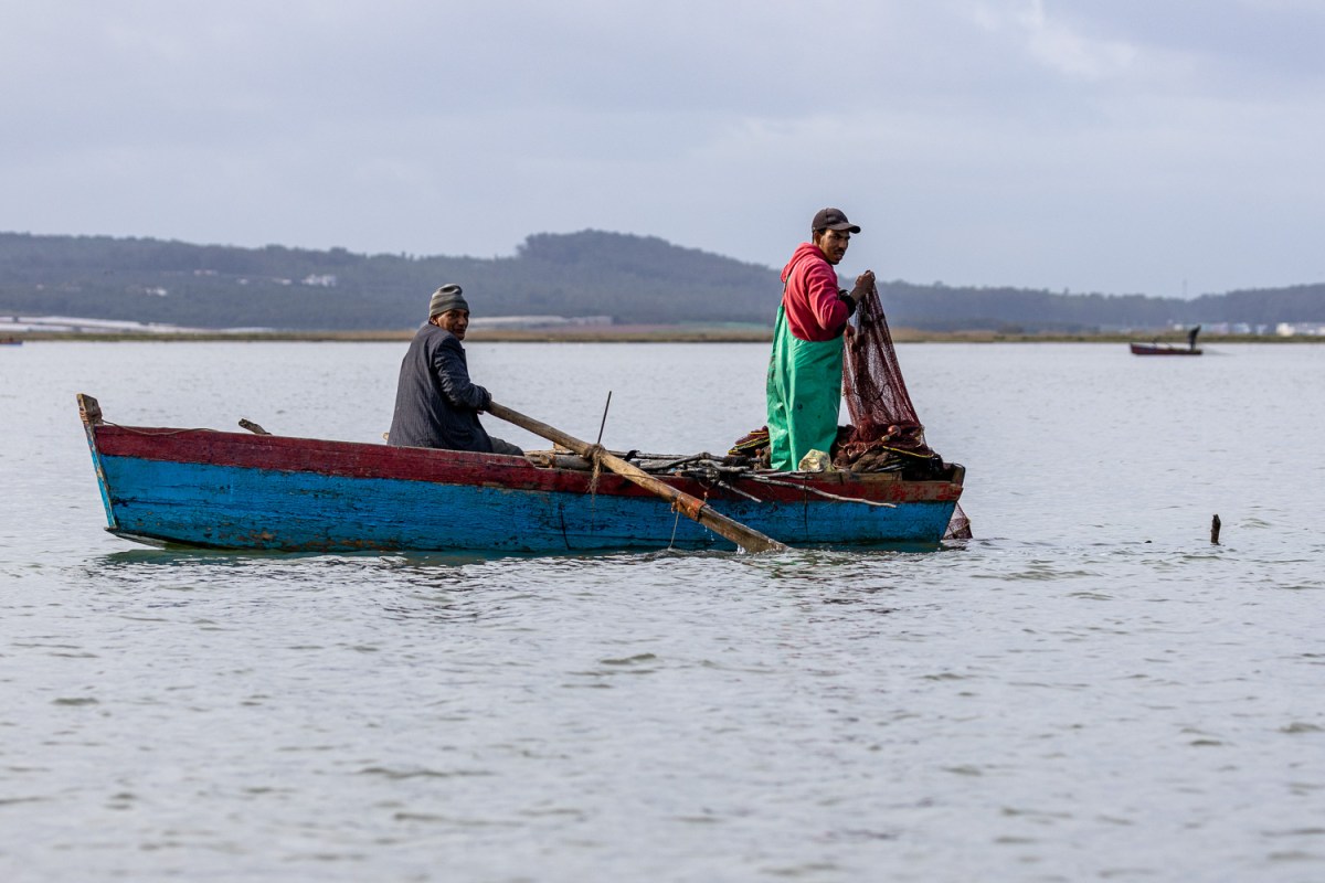 Nous faisons une sortie en barque avec un guide ornithologue dans la lagune de la réserve biologique de Merja Zerga près de Moulay Bousselham.