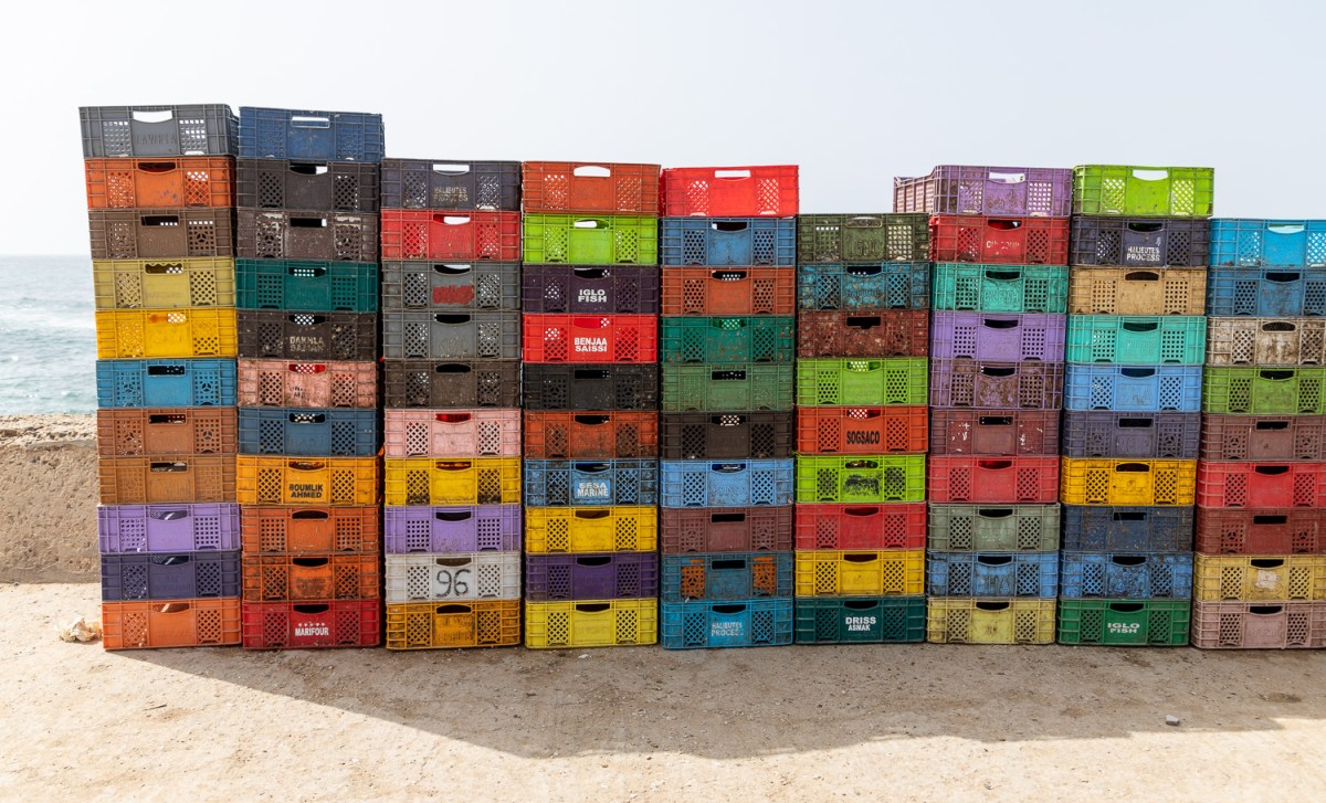 Un mur de casiers à poissons….