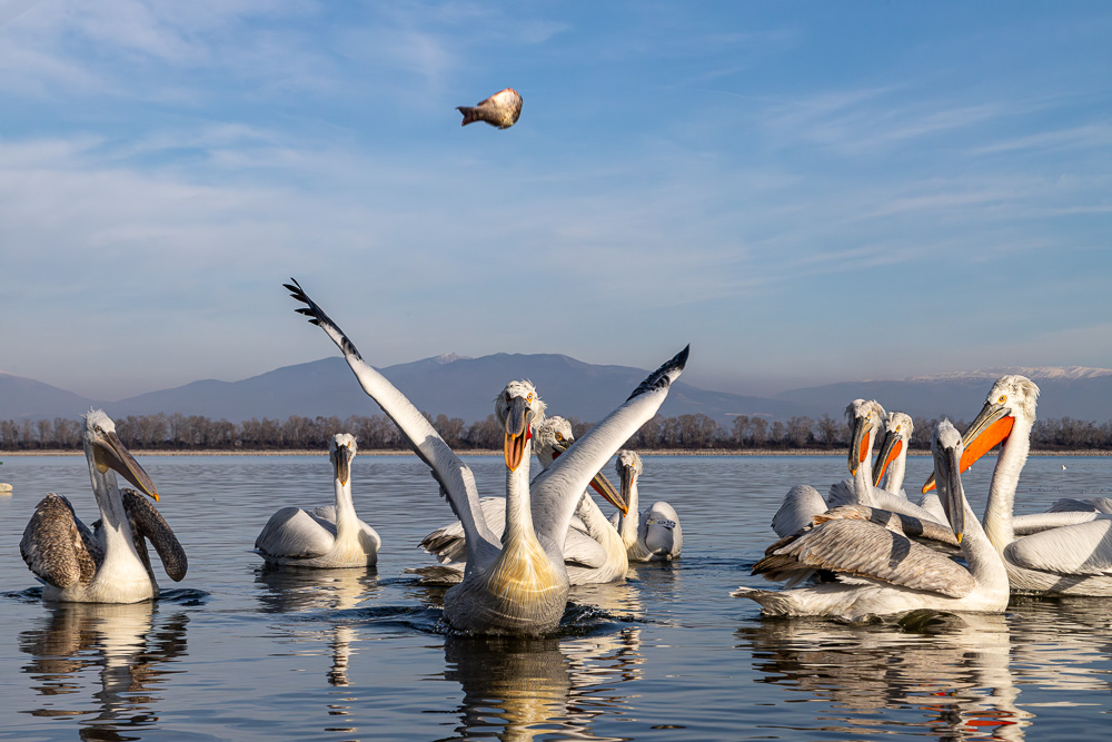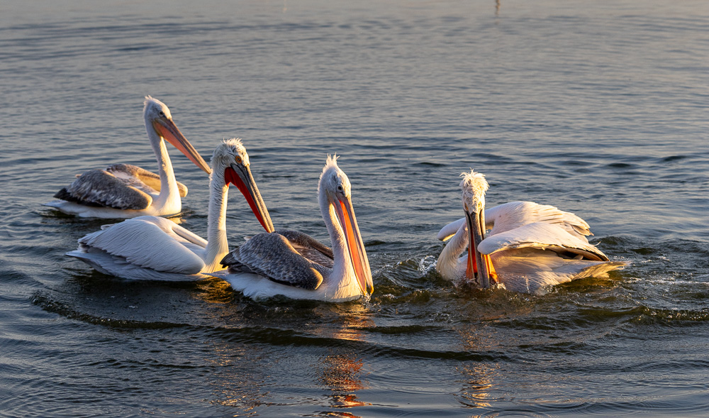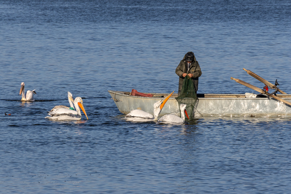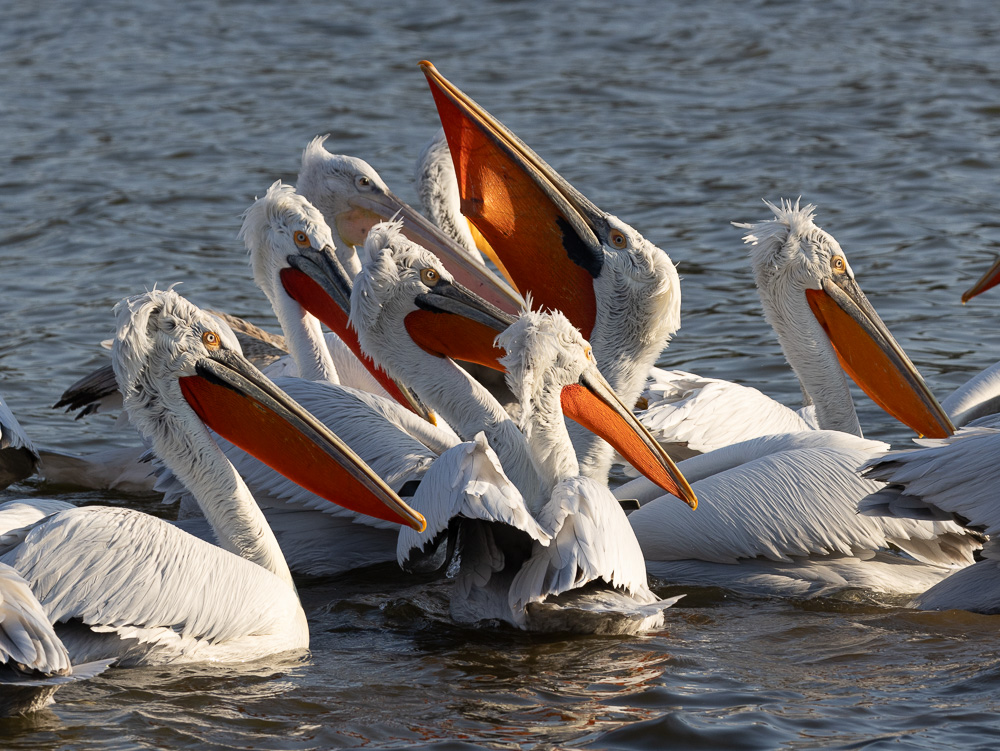 Au cours de nos 3 jours de pérégrinations autour du lac, nous avons pu observer plus d’une vingtaine d’espèces différentes et parmi celles-ci, outre les Pélicans, des Flamants roses, des Spatules blanches, une Cigogne noire, de nombreux Cormorans pygmées, des Canards par centaines (le Pilet, le Siffleur, le Souchet, la Sarcelle d’hiver) ainsi que la Bécassine des marais et tous les habitués des zones humides : Hérons, Aigrettes, Foulques, Mouettes rieuses etc.
