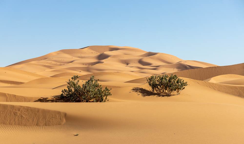 Nous ne nous lassons pas du paysage de ces grandes dunes dorées. Lors du bivouac, dissimulé entre 2 dunes, la température nocturne approche le zéro.