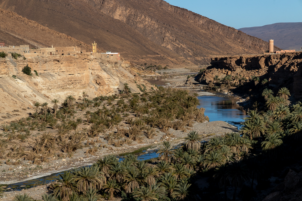 Bivouac sur la falaise qui domine une petite palmeraie face au village de Tissint.