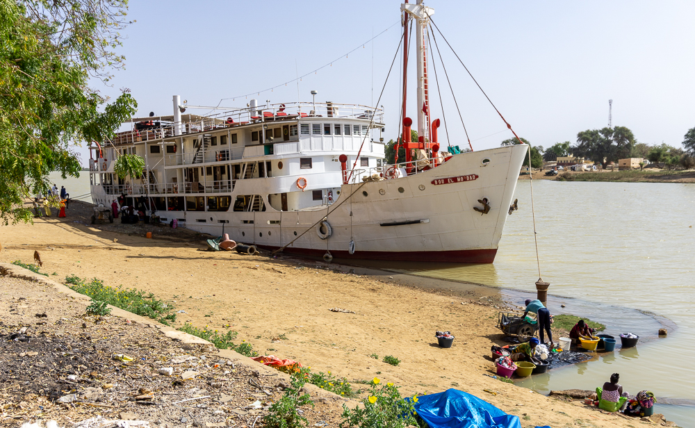 A Dagama et plus encore à Podor sur les quais en rive du fleuve, d’anciens bâtiments plus ou moins décrépis datent de l’époque du commerce de la gomme arabique et autres denrées. A Podor un petit musée resté en l’état nous ramène 50 ans en arrière. Le Bou-el-Mogdad date 1950. Il reliait St Louis à Podor avec sa cargaison de marchandises et quelques riches commerçants. Il a été rénové et fait maintenant office de mini paquebot touristique, naviguant toujours entre St Louis et Podor en 4 jours, au charme couleur sépia.