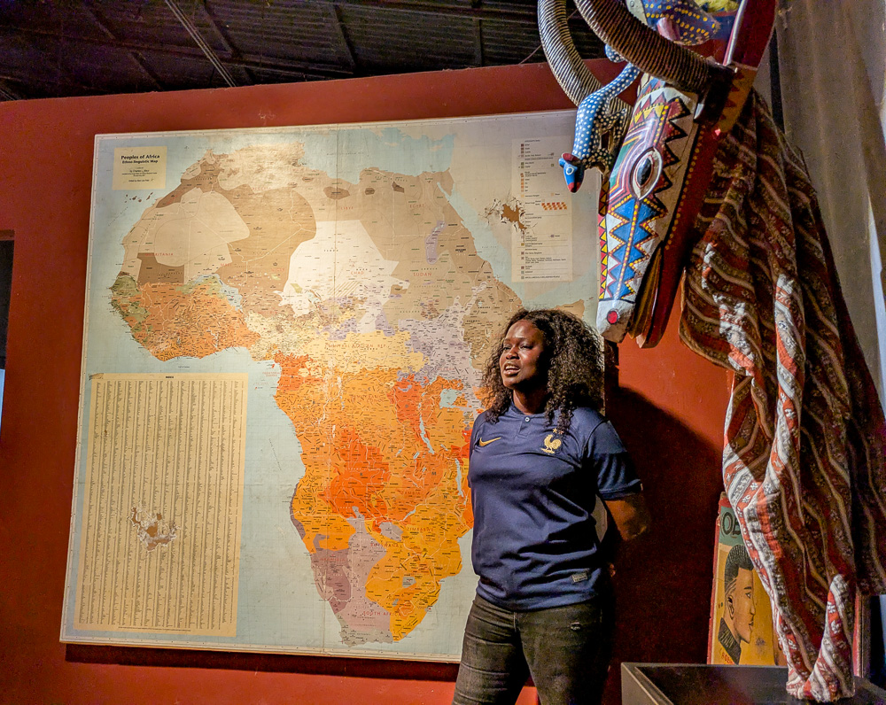 Une des personnalités qui nous aura le plus marqués est Juliette la guide conférencière du superbe petit musée MAHICAO, « musée d’art et d’histoire des cultures d’Afrique de l’ouest » à Djilor 14,12071 N, 16,65956 W. Elle retrace les grandes époques de l’histoire de l’Afrique, les particularités des différentes ethnies qui seraient au moins 3500 avec autant de langues et dialectes, bien sûr la traite négrière transatlantique mais aussi celle moins connue entre les pays du nord du sahara et ceux d’Afrique noire. Juliette sait prendre de la hauteur pour expliquer tous ces phénomènes et des aspects sociologiques de la culture et des religions Sénégalaises.