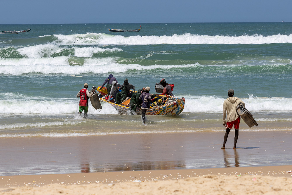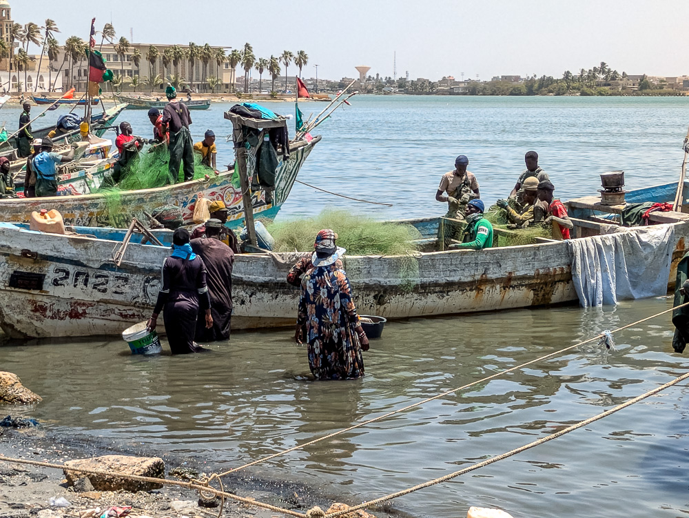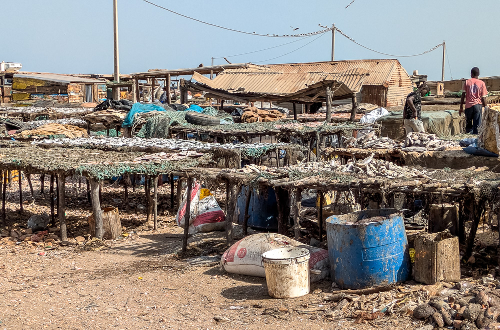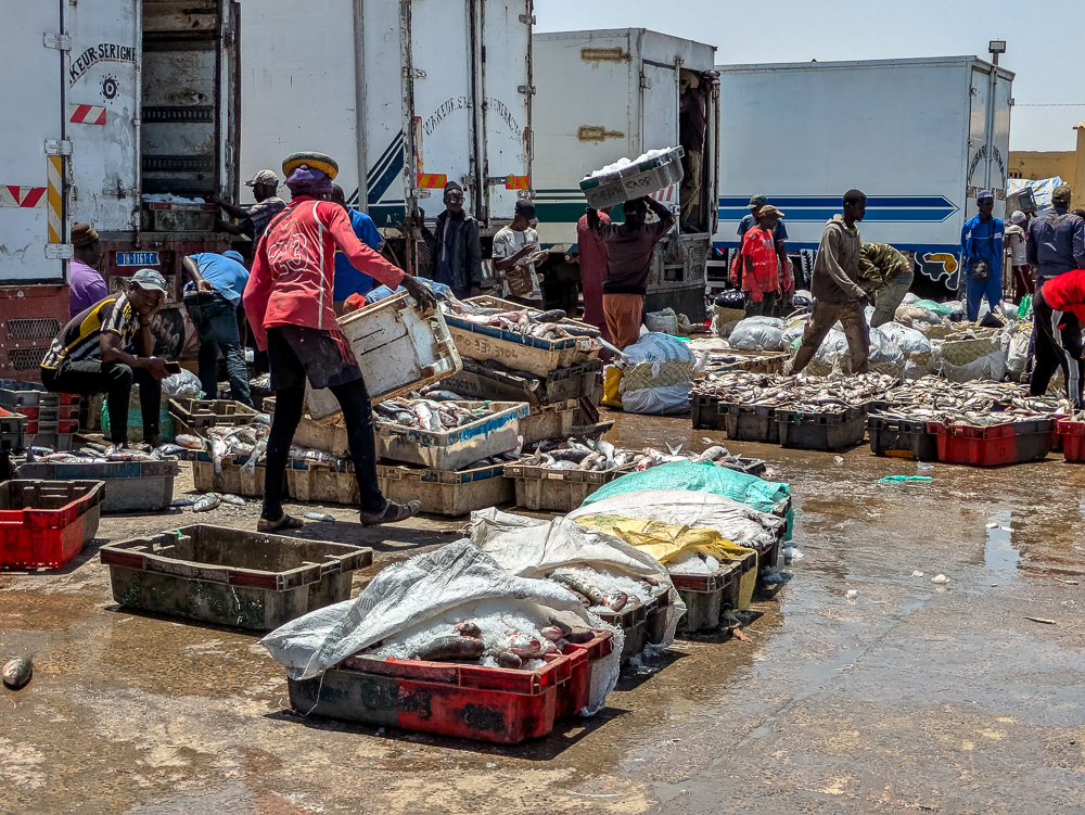 La pêche est la principale activité au Sénégal et le poisson la principale source de protéine. A la sortie des bateaux ou sur les marchés des ports il est possible d’acheter du poisson, capitaine, lottes, daurade, barracuda pour les plus fréquents mais aussi des crevettes des toutes tailles comme à Foundiougne. A Sokon nous mangeons un excellent plats d’huîtres de mangrove assaisonnés aux herbes et à l’ail. Mais les produits de la mer en vente sur les marchés, le sont au soleil sans glace et encore moins de frigo.