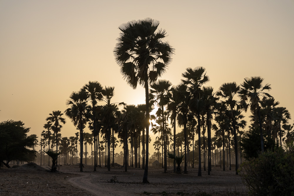 De là nous parcourons en pirogue les bolongs, ces canaux qui sillonnent la mangrove et un village insulaire. Plus tard, c’est en charrette que nous traversons avec un guide connaisseur en botanique la campagne et notamment la forêt de ces étranges et filiformes palmiers rognier à la silhouette de cure-dents coiffé d’un plumeau.