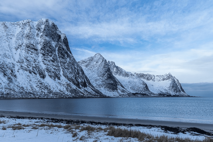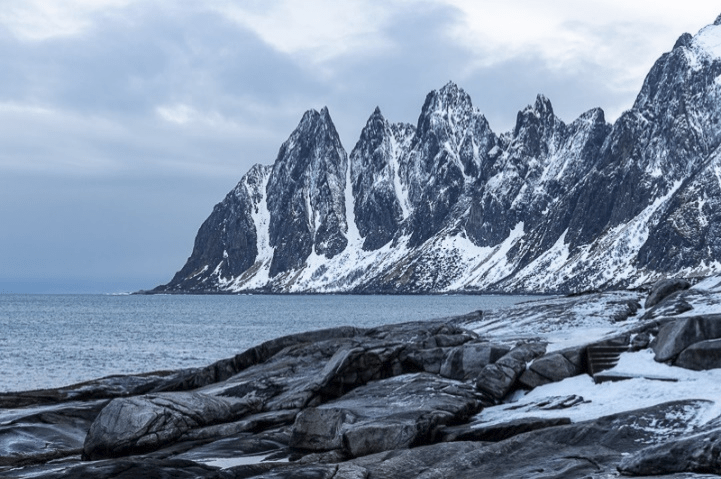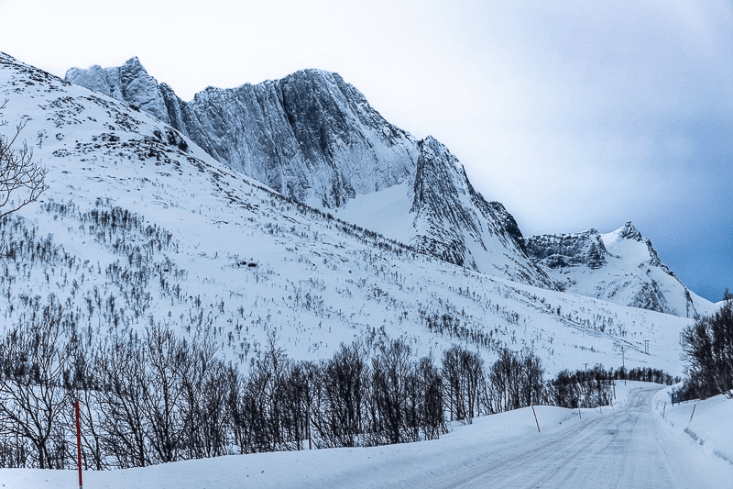Les paysages de montagne de l’île de Senja sont vertigineux, les falaises plongent à la verticale dans les fjords.