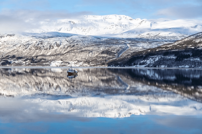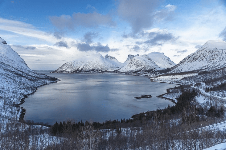 4-La Norvège en hiver. Les Fjords sous la neige.