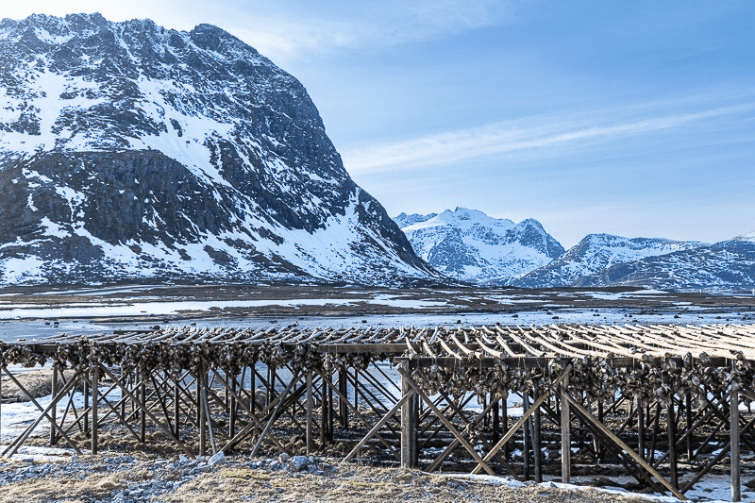 La saison de pêche est au maximum. Les bateaux de pêche côtière sont de petites tailles et les séchoirs à morues se remplissent pour profiter du vent pour faire sécher le « stockfish ».