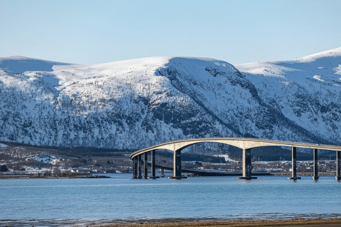 Direction Finnesnes pour accéder à l’île de Senja avec une alternance de pluie et de neige car le redoux s’installe.