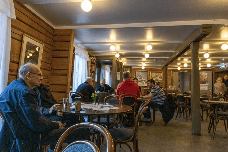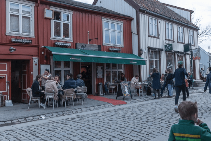 Les restaurants sont rares, souvent fermés même dans les grandes villes, moins dans les villes touristiques. Restent les fastfoods et les pizzerias. Les Norvégiens se réunissent dans des bars-salons de thé (sans alcool) où ils discutent pendant des heures. Ce sont des lieux très conviviaux. Ces lieux servent aussi petites pâtisseries et sandwichs.