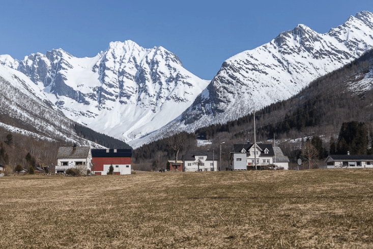 Les sommets sont encore bien enneigés alors que les alpages verdissent. Les Norvégiens commencent à sortir dans les jardins, les travaux extérieurs reprennent et partent en promenade sur les chemins devenus praticables.