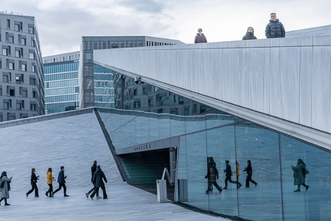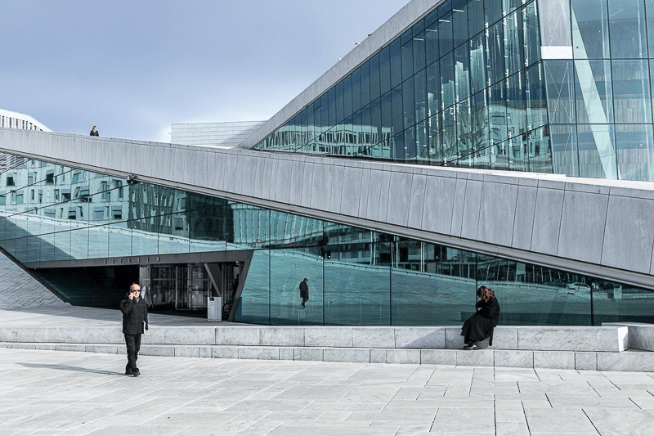 L’architecture du centre est un mélange de bâtiments de style classique et d’édifices contemporains de grande qualité. L’opéra et sa vaste esplanade est l’ouvrage marquant. Son pan incliné en forme de plage et ses façades en verre font un lien entre ville, mer et port. A voir sous le soleil de fin de journée, avec de nombreux promeneurs !