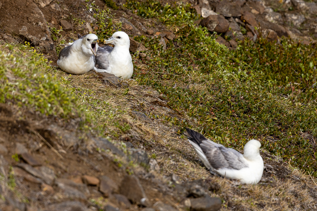 Les balades sur les falaises à VALANUKUR et plus au nord au bout d’un long chemin à HAFNABERG 63,88086° N, 22,73939° W permettent d’accéder à des sites de nidification où l’on retrouve : Fulmar boréal, Mouette tridactyle, Guillemot à miroir, et quelques Fou de Bassan.