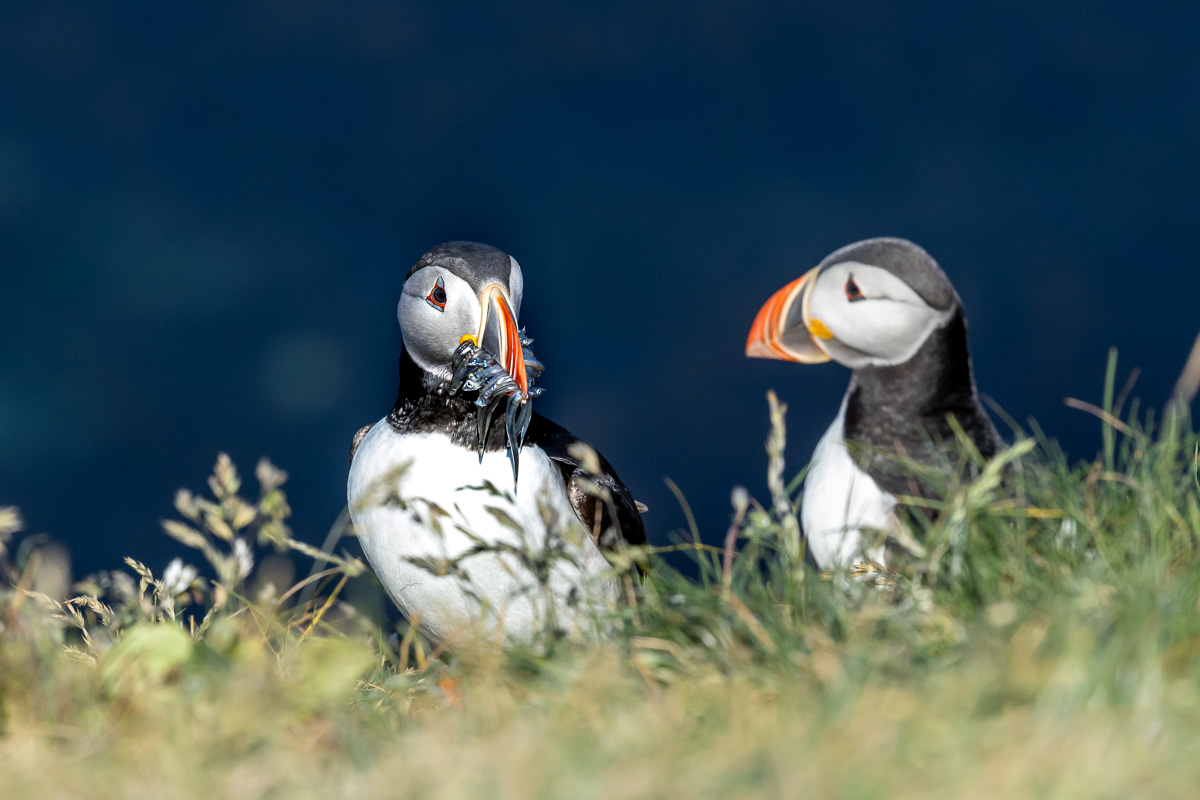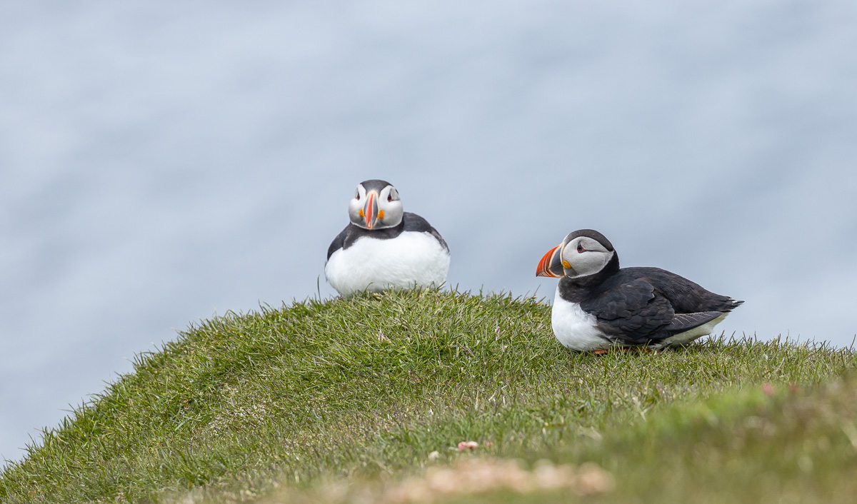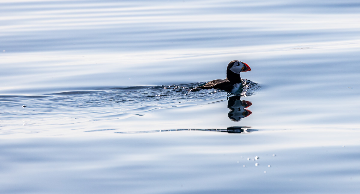 La petite île de Grimsey est un lieu de nidification du Macareux moine. 2 fois par semaine un petit bateau propose de s’y rendre depuis le village de DRANGSNES pour les observer. Nous ne manquons pas cette occasion. Nous sommes 3 visiteurs pour des milliers d’oiseaux… Le beau temps aidant, nous faisons de très belles vues de cet oiseaux en costume de parade. En hiver, il perd ses couleurs chatoyantes. Il n’est pas farouche au sol mais très rapide en vol. 65,688° N, 21,440° W.