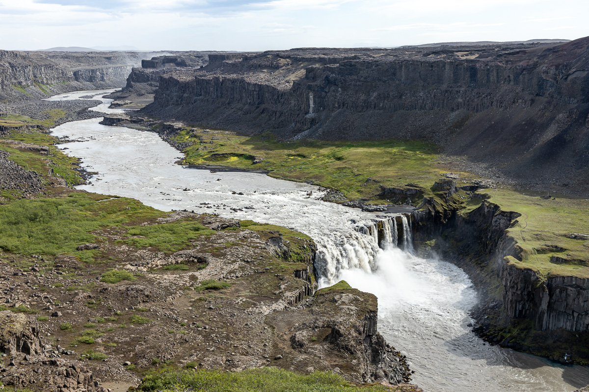 Nous rentrons un peu dans les terres pour voir les fameuses chutes d’eau de la JOKULSA, SELFOSS, DETTIFOSS et HAFRAGILSFOSS, qui battent des records européens en débit d’eau et hauteur.