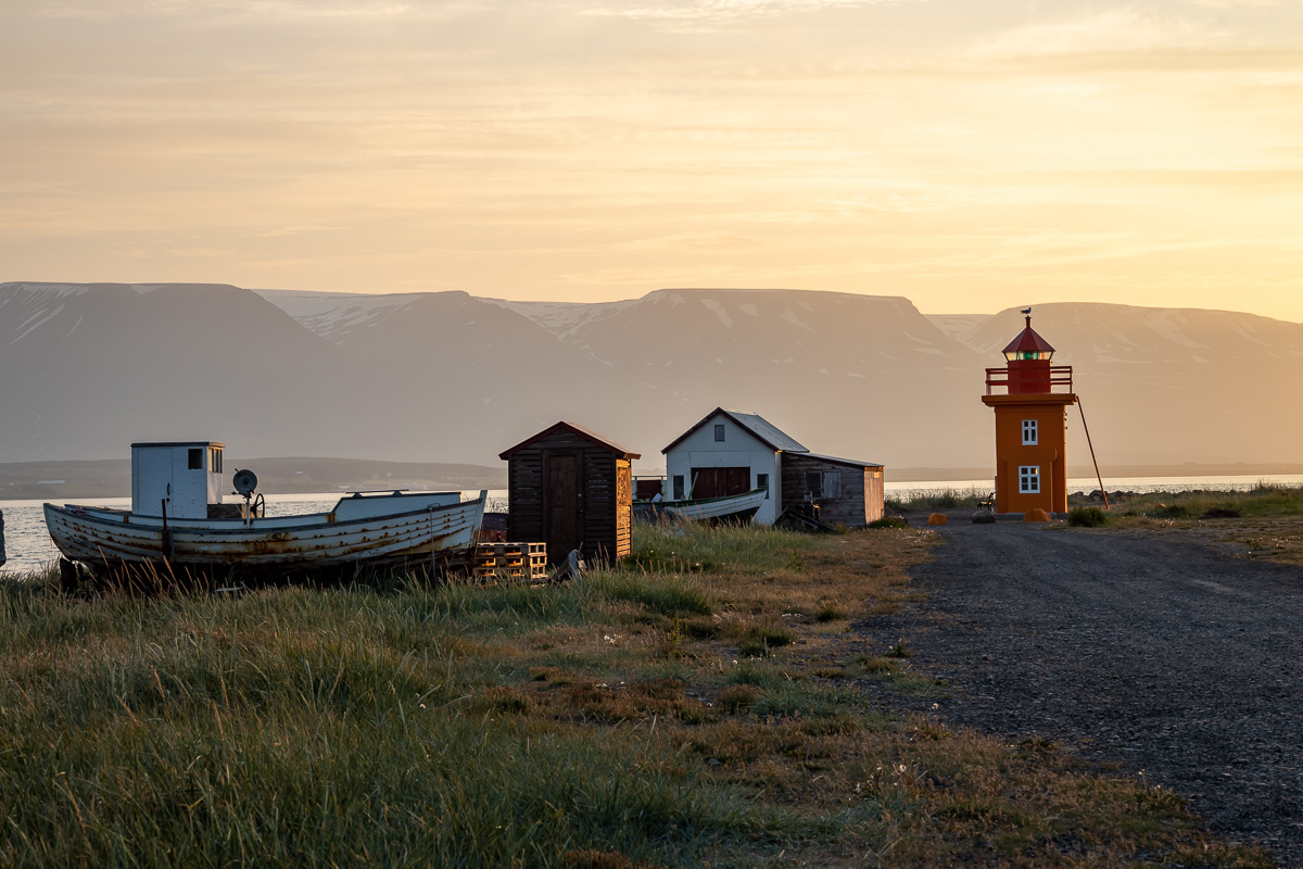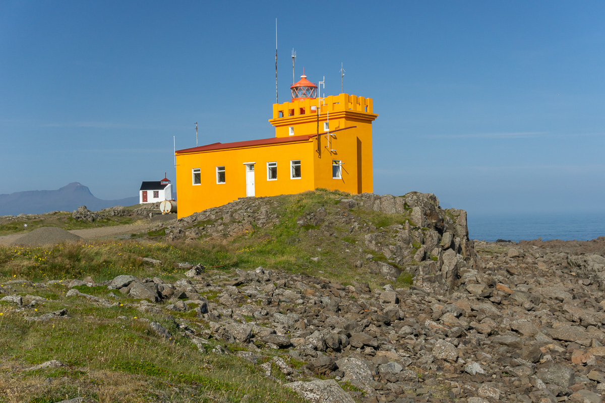 La gravelle 953 (très raide) nous permet de passer le magnifique col MJOAFJARDARHEIDI et de remonter le fjord MJOIFJORDUR très sauvage, pour finir dans un village du bout du monde et un phare orange comme il se doit en Islande.