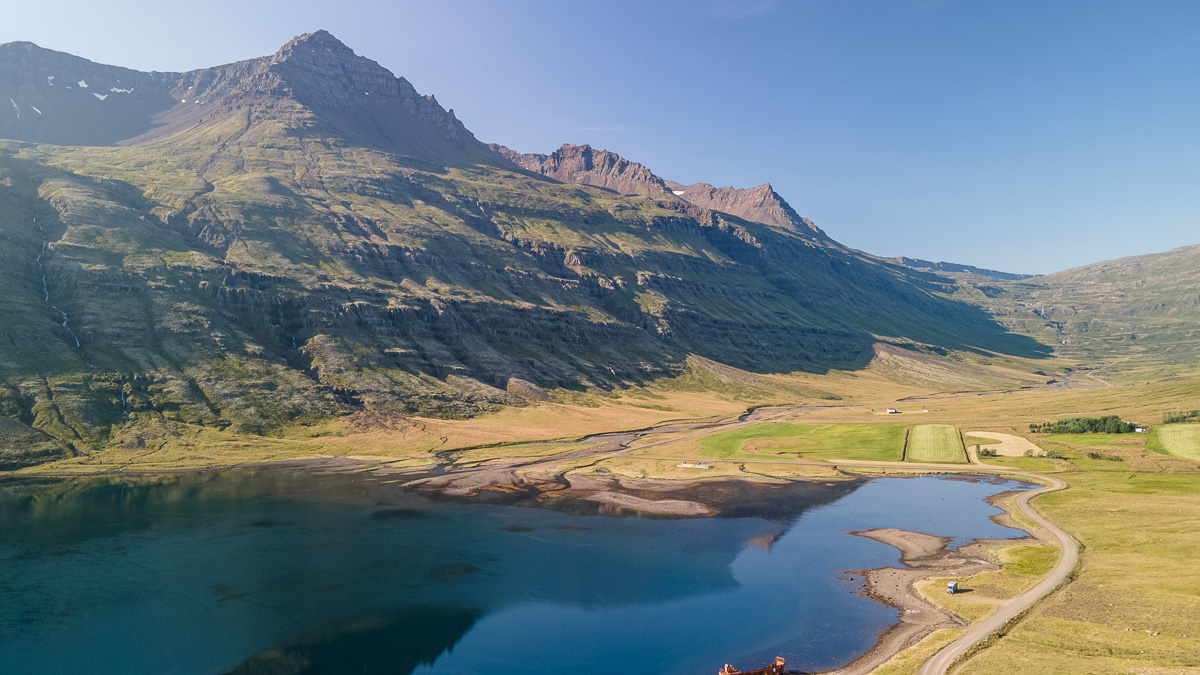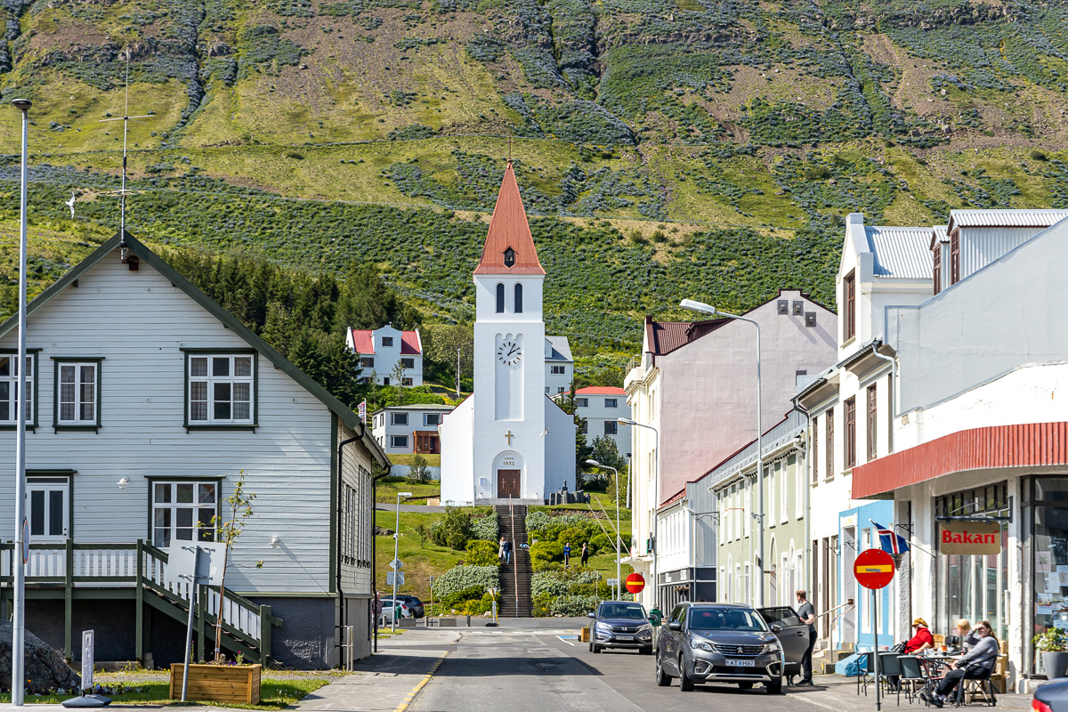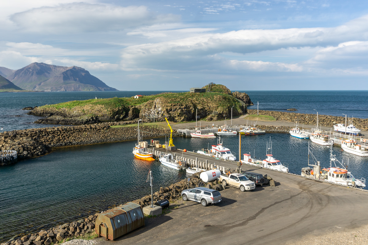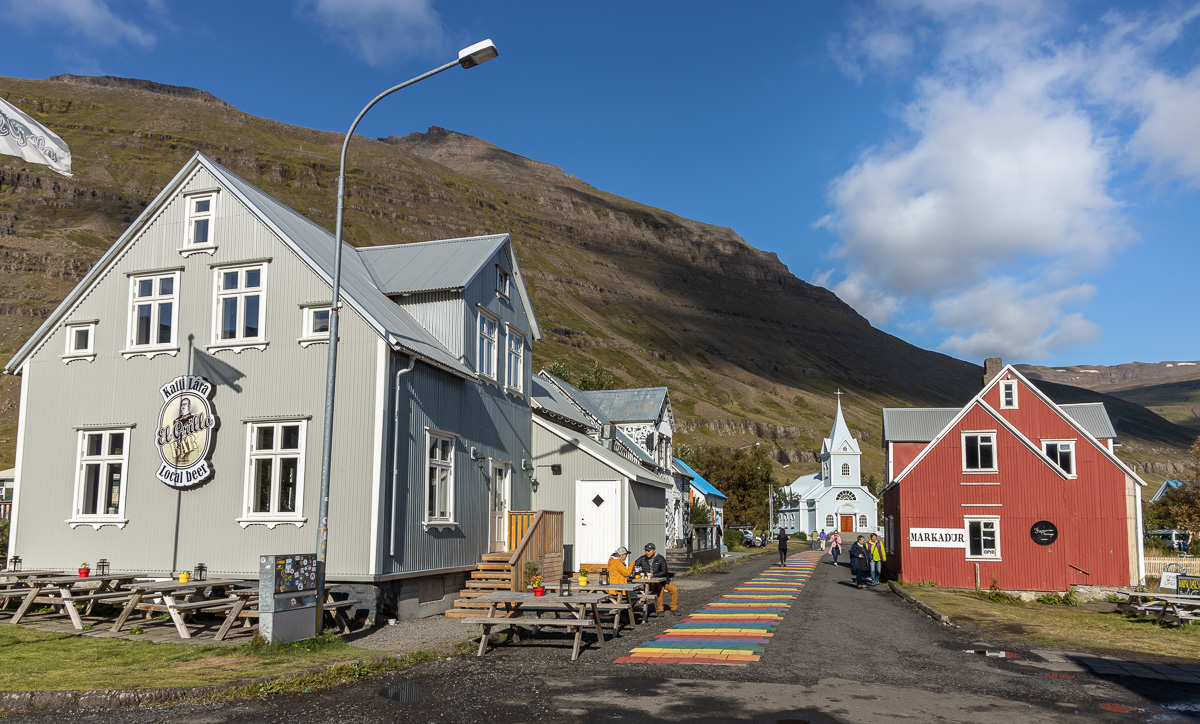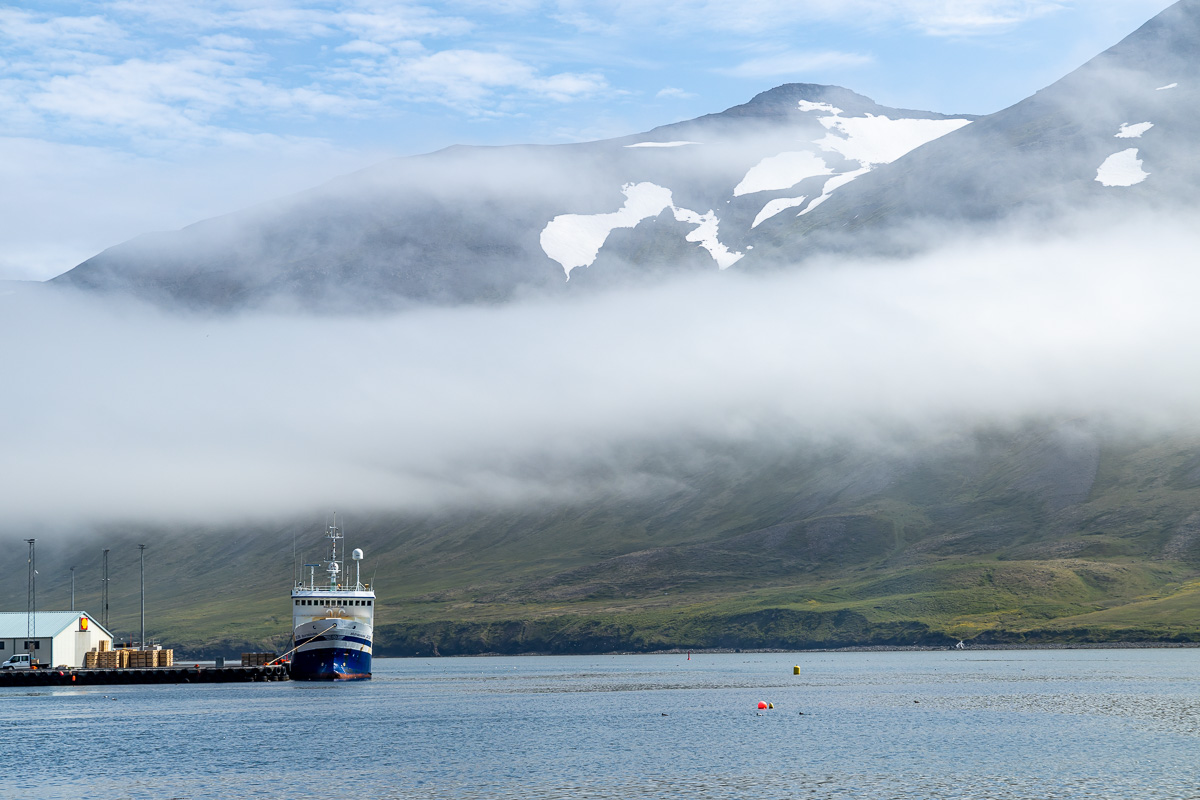 Les villes de ESKIFJORDUR et NESKAUPSTADUR qui accueillent les plus grosses usines de conserveries de poissons d’Islande. Ces petites villes de 1000 à 2000 habitants paraissent minuscules au fond des fjords de 20 km, des paysages grandioses et des sommets de 500, 600, 700m.