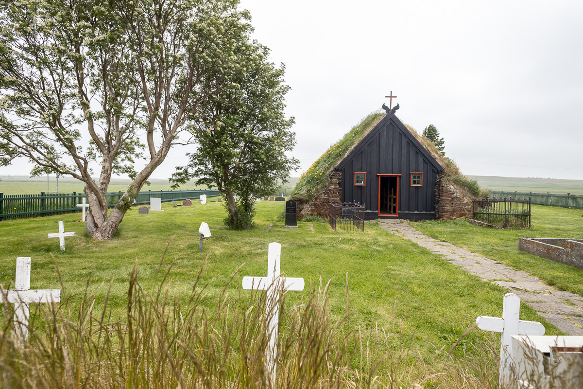 Visite d’une des dernières églises rurales en bois et au toit de tourbe VIDIMYRARKIRKJA. Piste 7682 , 65,538° N, 19,471° W