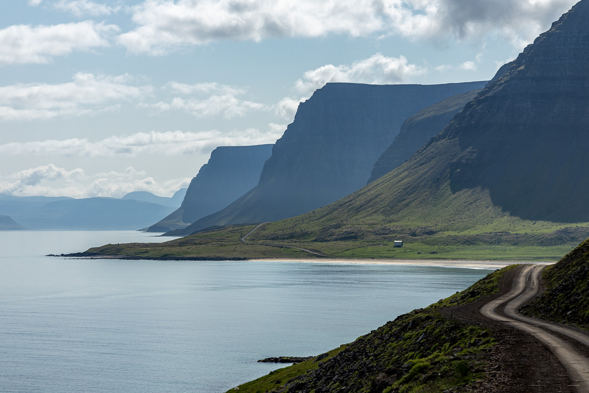 Le nord de la péninsule centrale Est est une suite de fjords de 10 à 15 km qui entaillent la côte. Il faut en contourner 6 pour atteindre la « grande » ville de la région ISAFJORDUR.