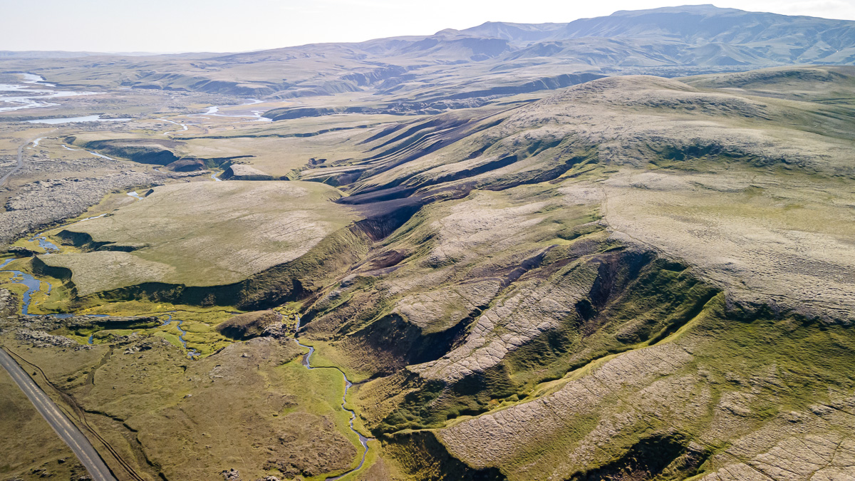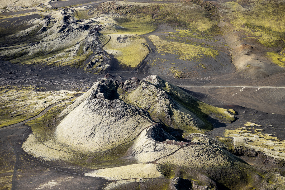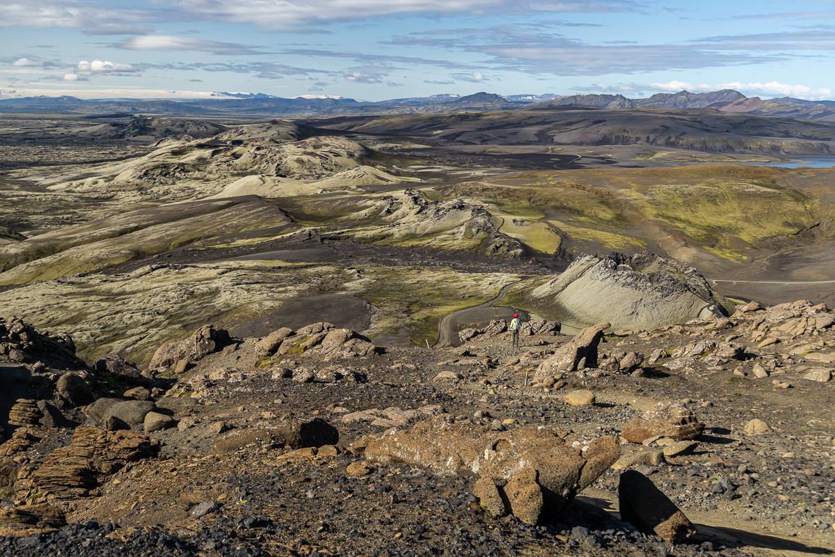 Par les pistes F206 et F207 nous rejoignons le site de Laki. C’est une chaîne de volcans de 25 km de long qui s’est crée en 1793 lors d’une des plus grosses éruptions de l’histoire de l’Islande. Du sommet accessible à pied en 1h et 200 m de dénivellation, nous pouvons voir ce chapelet de cratères à perte de vue.