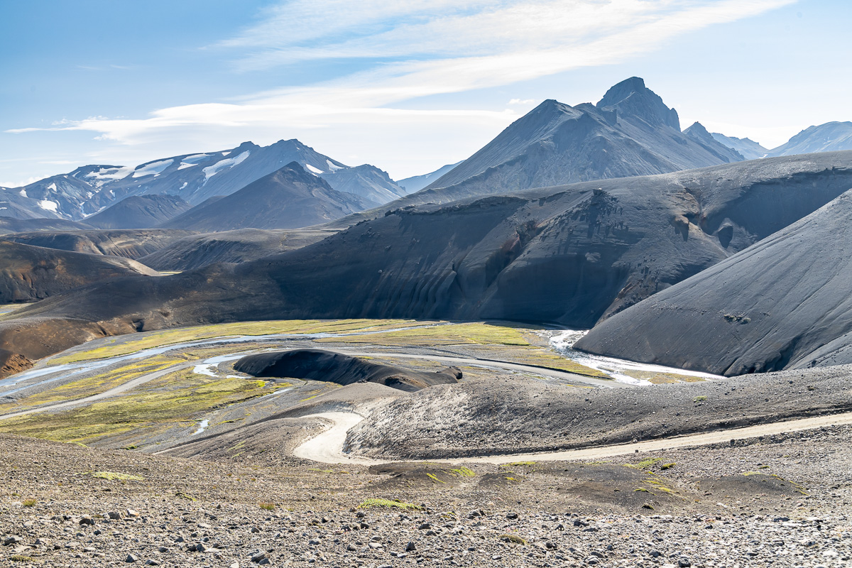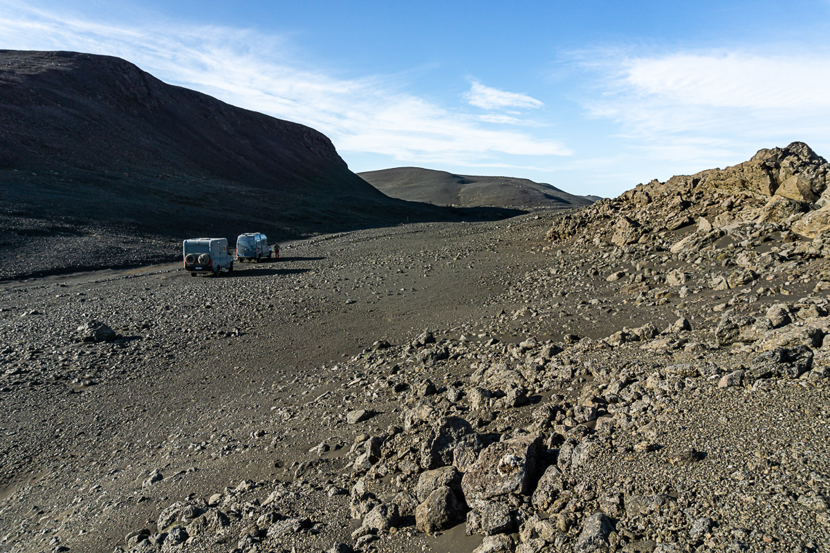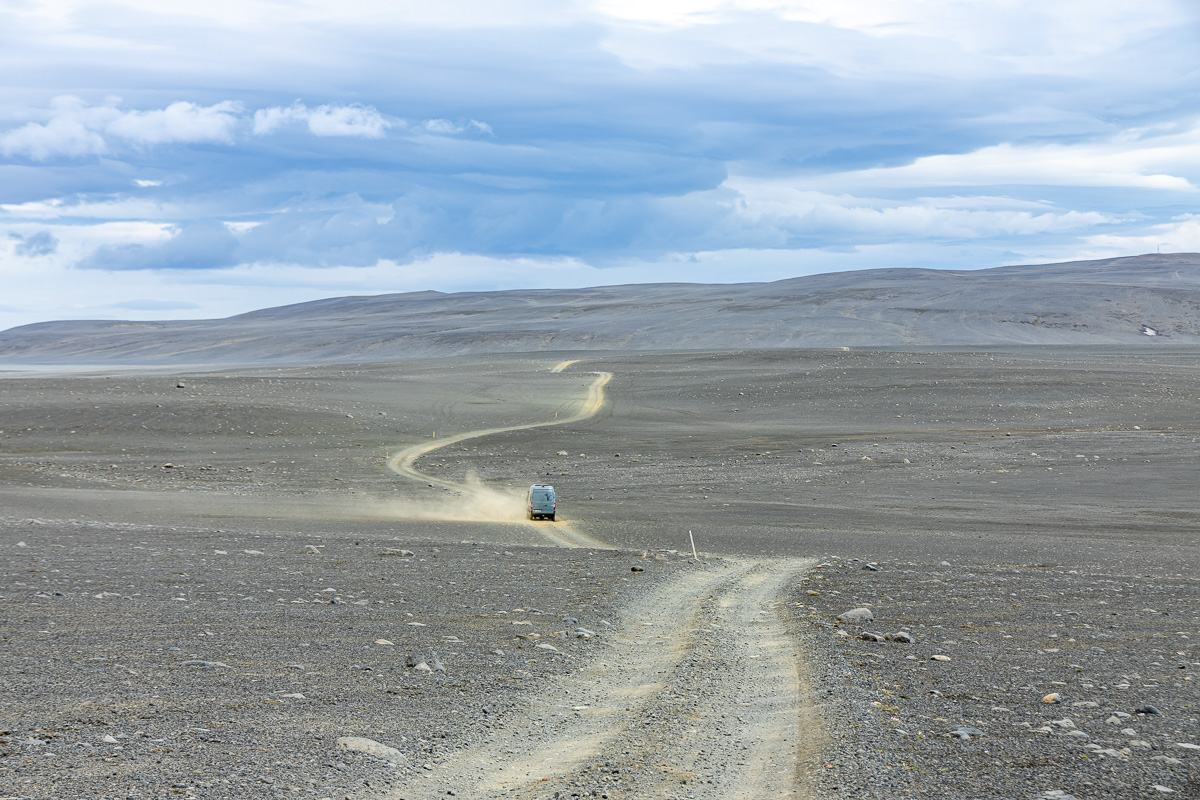 Nous faisons une incursion dans le massif GRAENAVATN par la piste 958 qui mériterait d’être classée F tant elle est raide, étroite et ravinée. Nous n’irons pas jusqu’au bout.
