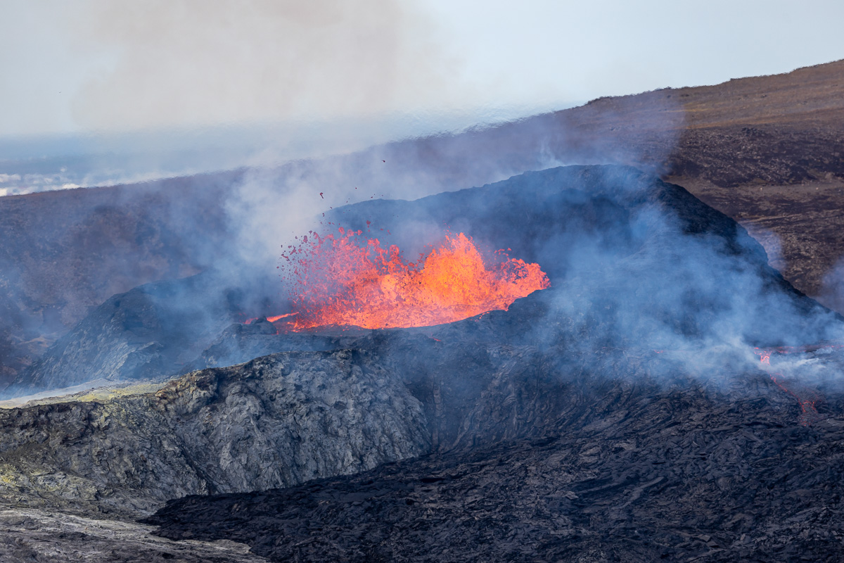 C’est sur la péninsule de REYKJANES au sud/ouest de l’Islande, sur la faille tectonique que nous pouvons admirer le volcan actuellement en activité de FAGRADALSFJALL.