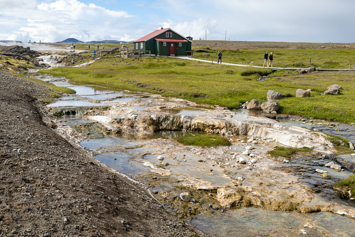 Plus loin sur la 35 le site géothermique de HVERAVELLIR 64,865° N, 19,552° W, très isolé dans son champs de lave.