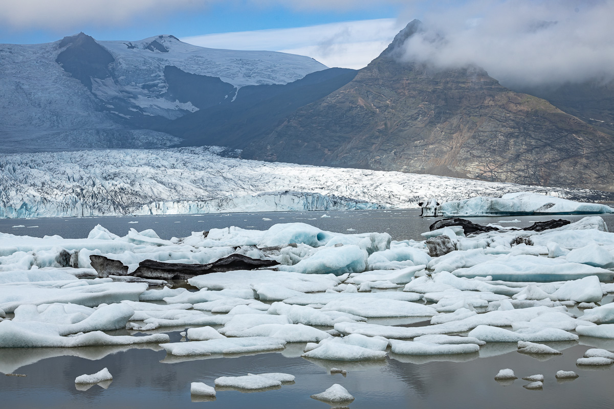Nous revenons sur la côte pour contourner le VATNAJOKULL par le sud et profiter des paysages offerts par toutes ses langues glacières qui viennent se jeter dans les lacs et vêler leurs icebergs.