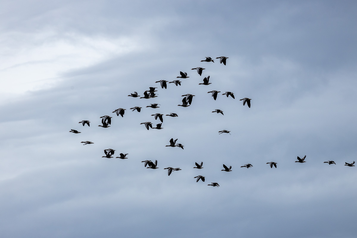Puis retour à EGILSSTADIR par la gravelle 966 et la route 95, à la recherche des Oies cendrées, derniers oiseaux encore présents avec quelques Eiders et Fulmars, qui nous survolent en formation et qui repartent elles aussi vers le sud. Nous en verrons peut-être du pont de notre ferry en route vers le Danemark.