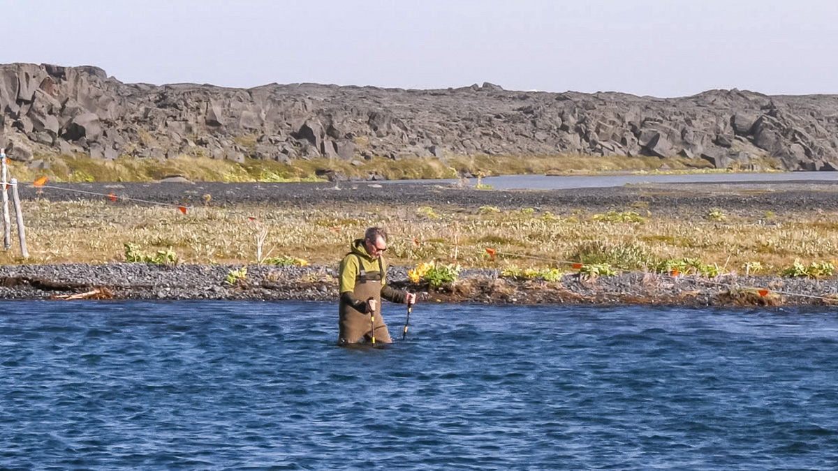 Nous nous engageons sur le contournement de la péninsule de VATNES à la recherche de falaises terreuses qui pourraient accueillir des Macareux qui nichent dans des terriers. Recherche vaine avec en lot de consolation un moment de détente dans le hot pot de GRETTISLAUG, petit bassin sommairement maçonné avec des rochers et dont l’eau est entre 37° et 40°. 65,881°N, 19,736°W