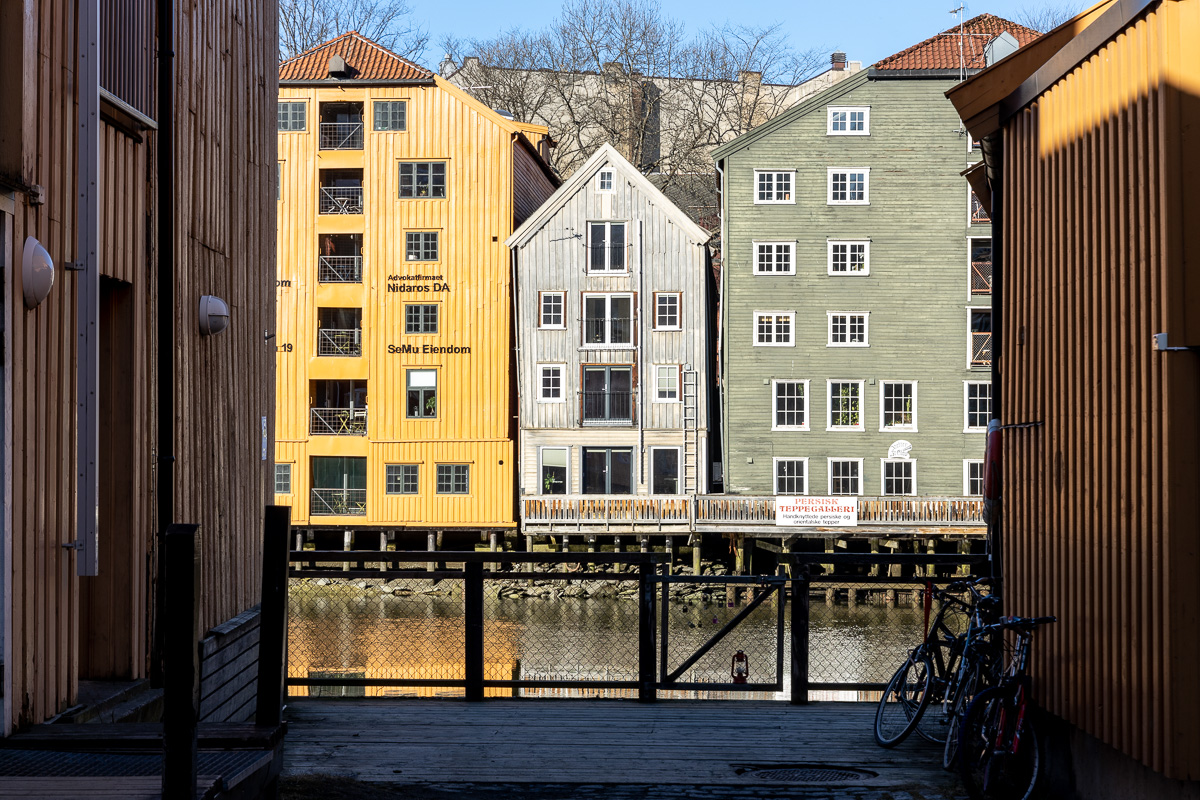 Tromdheim, le quartier des anciens entrepôts construits en bois et en briques.