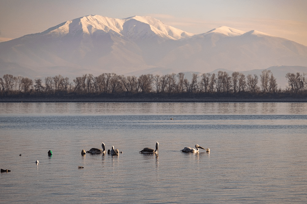 L’ensemble du lac est un site réputé pour sa valeur ornithologique avec en particulier une colonie de Pélicans Frisés. Un petit espace fréquenté par les pêcheurs et les photographes est aussi un bivouac très agréable. 41,14884 N – 23,20942 E