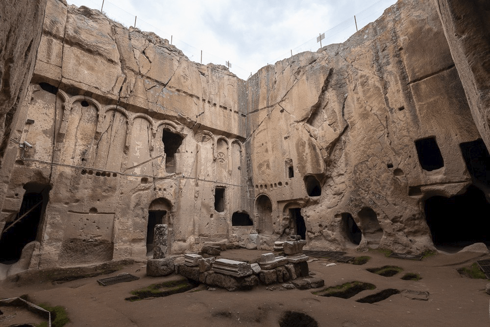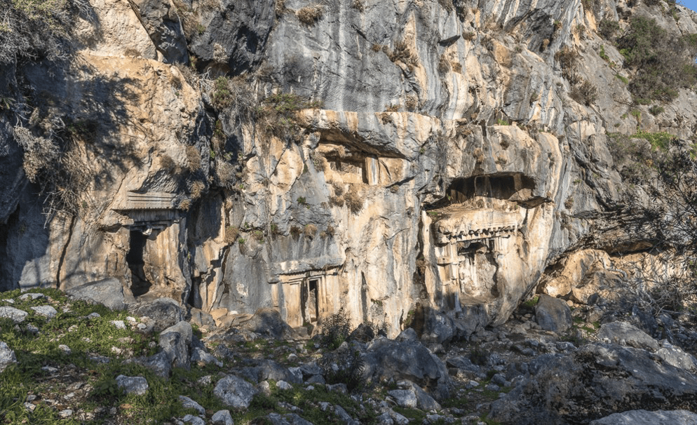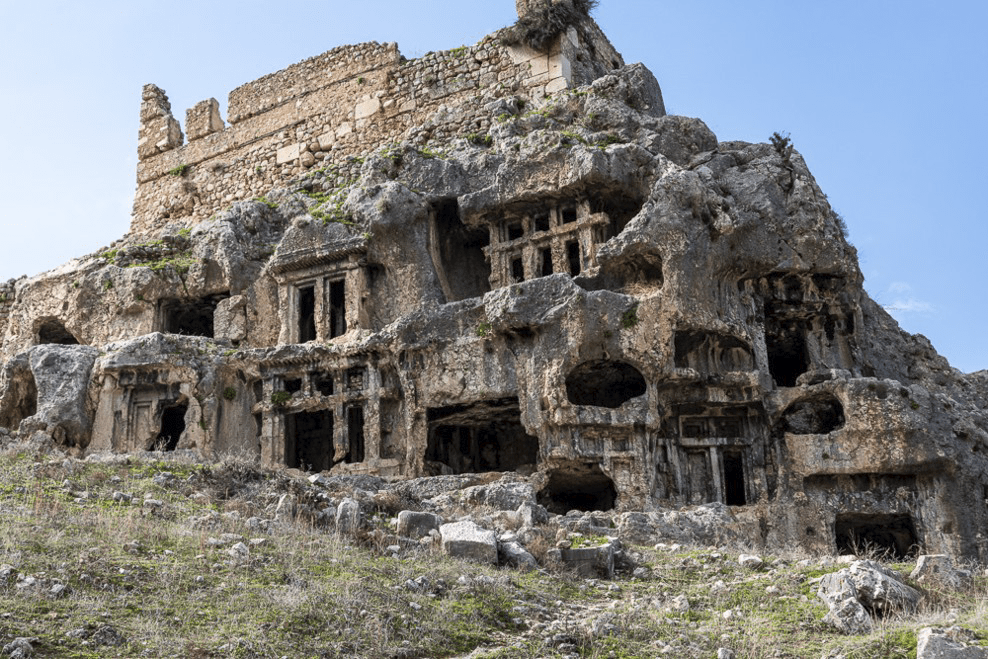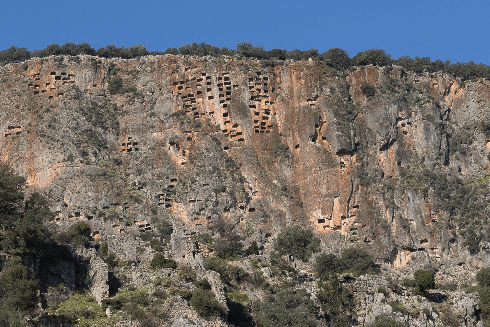 Mais l’émotion la plus forte est à Pinara où les tombeaux Lyciens sont perdus dans la montagne. Plus surprenant, des centaines de tombeaux sont creusés dans une falaise vertigineuse de plusieurs centaines de mètres de haut.