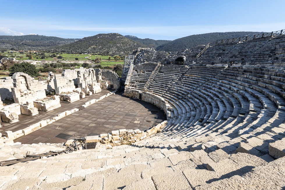 A Patara, un superbe théâtre a été reconstruit dans cette ville qui était portuaire. La mer est désormais remplacée par un marais mais la rue principale débouche encore dans l’eau.