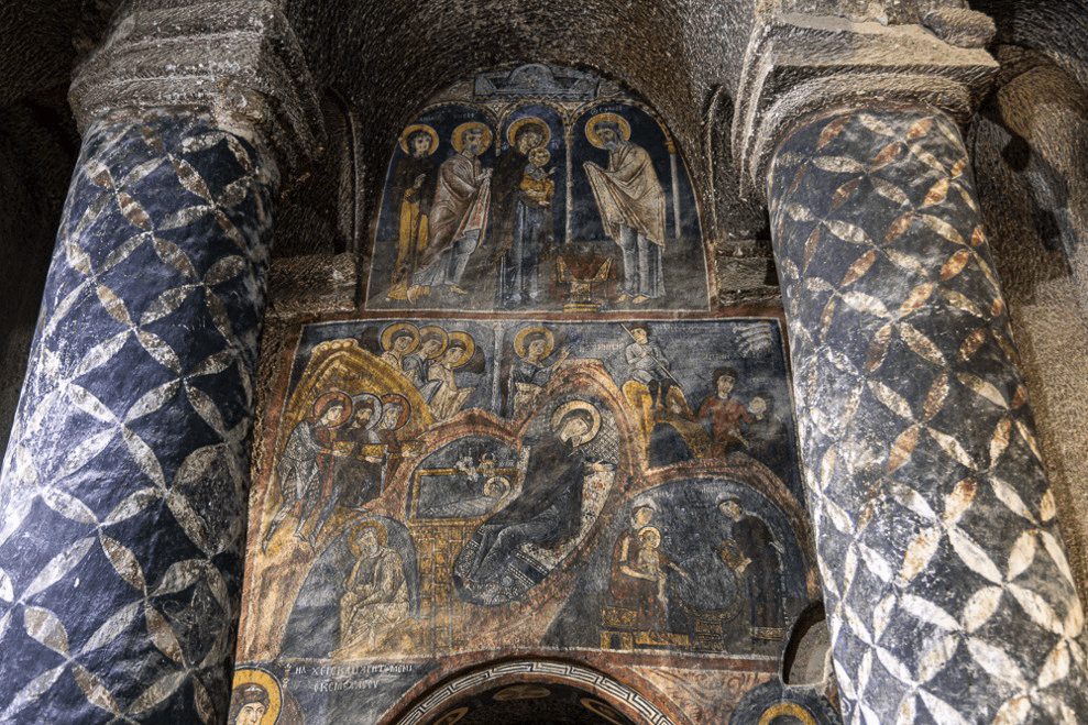Notre première visite de village troglodytique à Yaprakhisar, 38,30126 N, 34,26327 E, est suivie d’une balade dans les gorges de Ihlara (38,23845 N, 34,30646 E) où se trouve une centaine d’églises troglodytiques dispersées sur une quinzaine de kilomètres. Nous n’en avons pas fait l’inventaire, d’ailleurs la plupart n’est pas accessible. Seules les plus spectaculaires en raison de leurs fresques sont visitables.