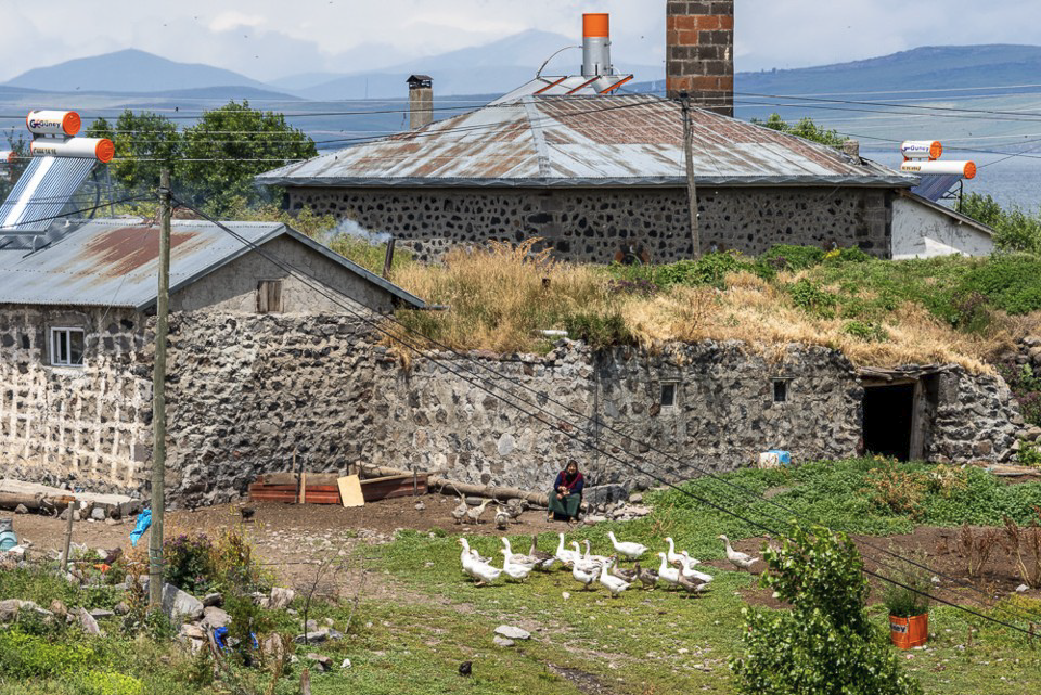 En sillonnant par les petites routes et les pistes agricoles cette région de hauts plateaux vallonnés à 2000 m d’altitude le long de la frontière Arménienne, nous traversons bon nombre de villages, aux habitations très pauvres et rudimentaires, dont l’élevage semble la principale activité. Les troupeaux de vaches moutons et oies déambulent tranquillement sur les routes et chemins.