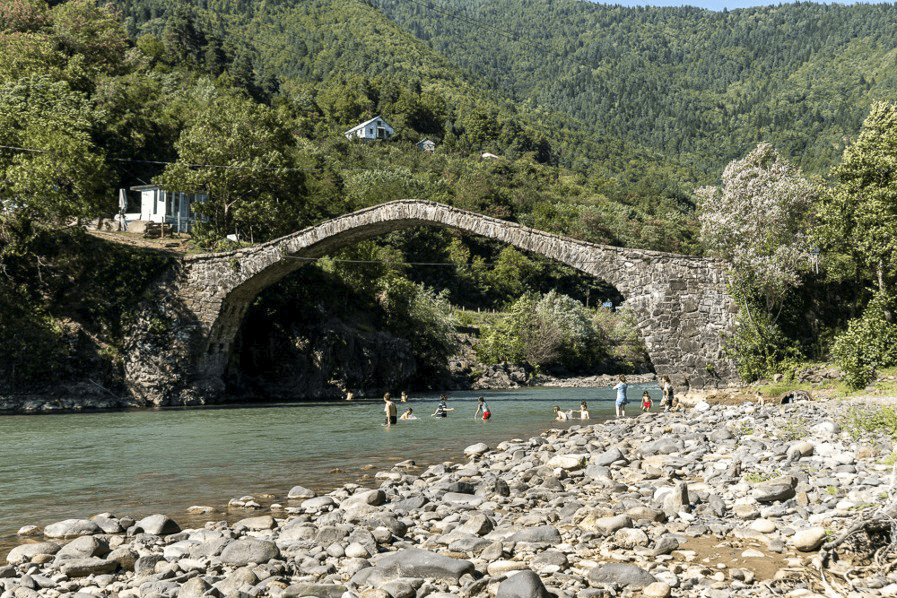 Puis nous prenons la route vers l’est, dans le petit Caucase, une chaîne de montagne de 2000 m aux versants très abruptes et aux petites routes très pentues et aériennes. La particularité de ce secteur sont les petites mosquées de village en bois et les ponts en pierres ultra fins, de 1000 ans. D’ouest en est, ceux que nous avons trouvés et visités grâce au guide Ountravela :