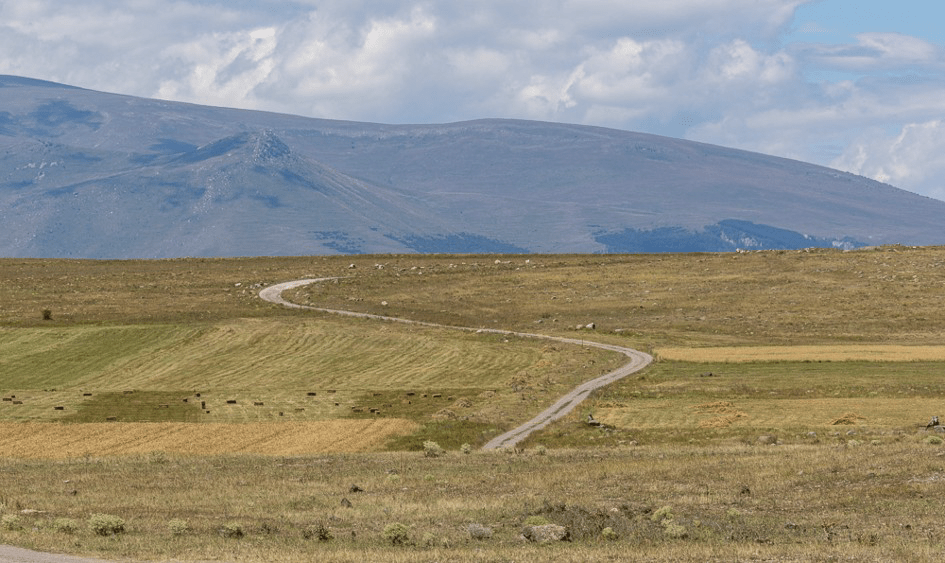 Puis, nous traversons des plateaux vallonnés entre 1000 et 1300 m d’altitude. Les nuits sont fraîches, d’autant que progressivement la météo se dégrade. La campagne est toute grise. Elle ne s’est pas encore remise de la neige bien présente sur les sommets de 3000 m environnants et parfois encore dans les fossés.
