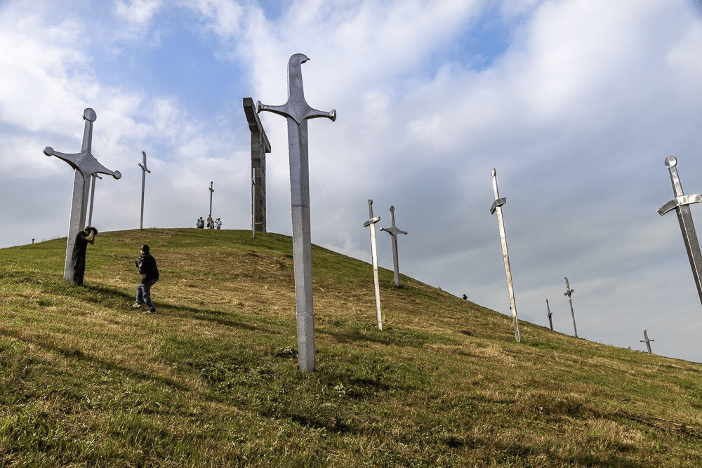 En parcourant la montagne entre Manglisi et Dzegvi nous arrivons sur un curieux mémorial au mont Didgori qui célèbre la victoire des Géorgiens sur les Seljuck en 1121, bataille qui fait la fierté nationale. 41,76034 N, 44,50810 E