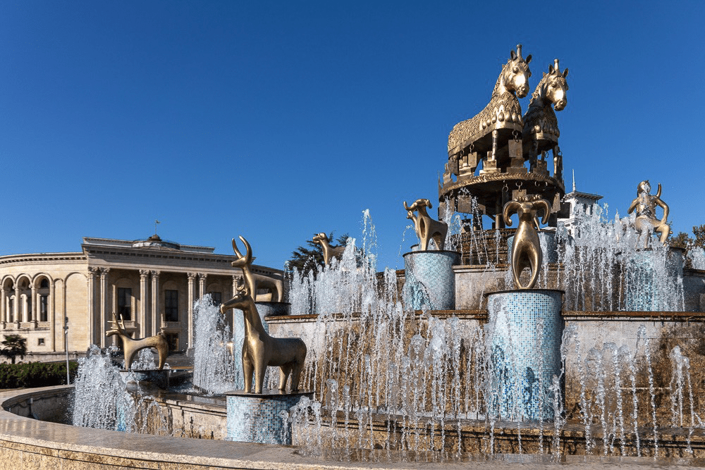 Le centre ville de Kusaisi est comme beaucoup de sites, en travaux. La faible activité du chantier laisse présager encore quelques années, voir décennies de dérangement. Cela ne nous empêche pas d’admirer la magnifique fontaine où sont reproduites des statuettes découvertes dans divers fouilles en Géorgie.