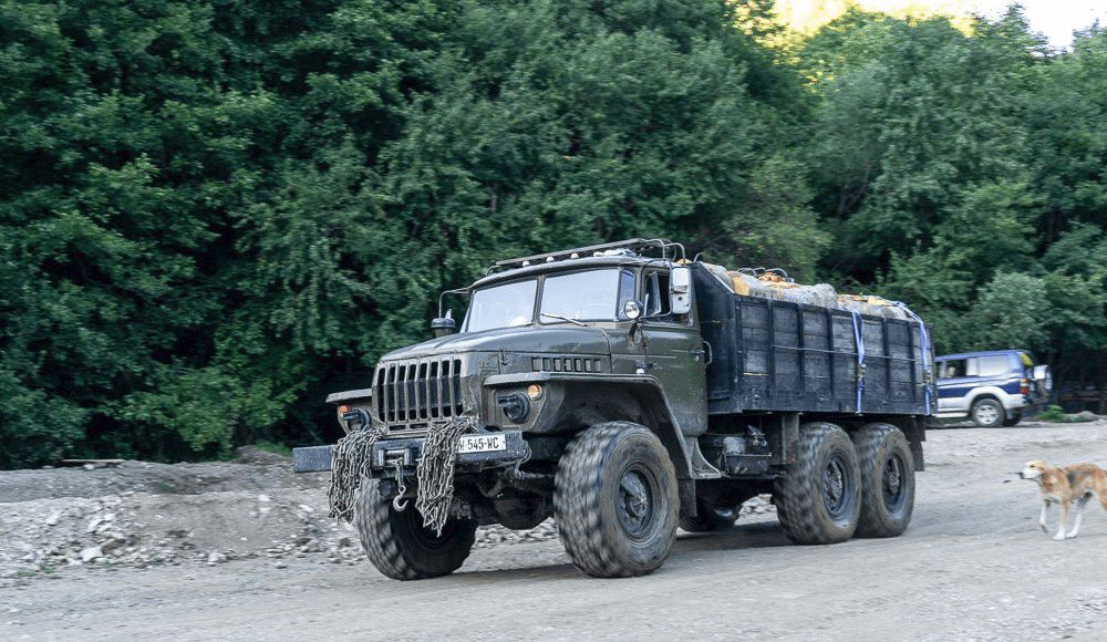Les vieux camions russes semblent indestructibles. La fumée n’est pas très euro 6 ! Mais pas de problème d’ADBLUE