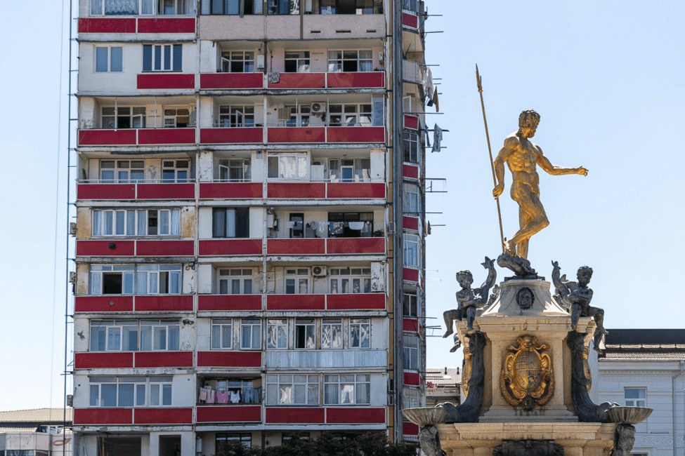 La ville de Batumi est très contrastée ; des quartiers périphériques, tristes et austères et le front de mer, vitrine de la ville voire du pays. Squares, belles places, immeubles contemporains, quartiers anciens « bobo », restaurants.
