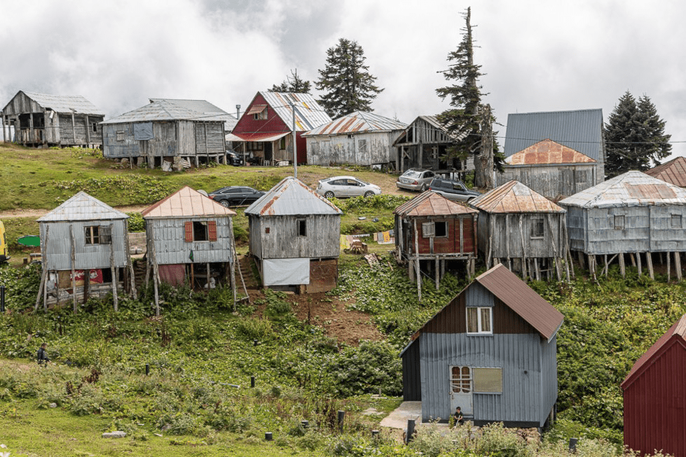 Nous sillonnons les vallées d’alpage où les habitations sont dispersées. Plus encore qu’en Turquie, de nombreuses maisons en bois au confort sommaire sont habitées.
