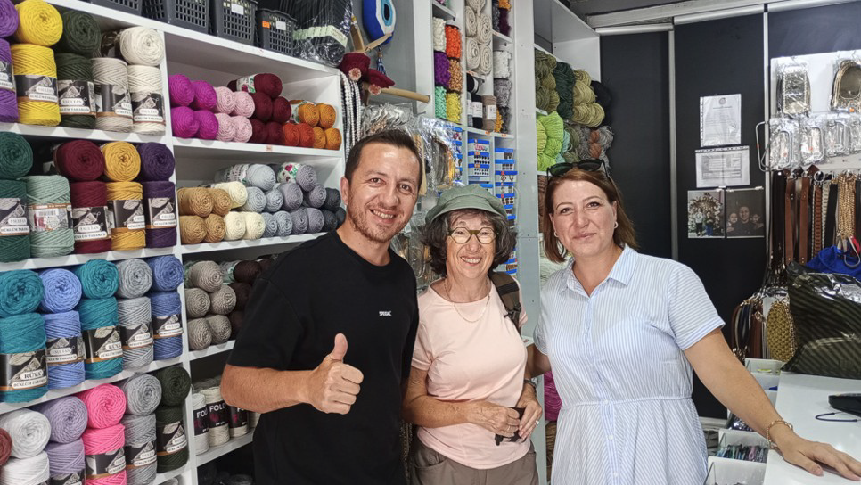 Alexandrine déniche toujours un magasin de laine ou de tissus dans chaque pays visité. Il faut toujours garder un petit coin de placard disponible pour y loger les nombreuses pelotes de laine et tissus qu’elle ramène.