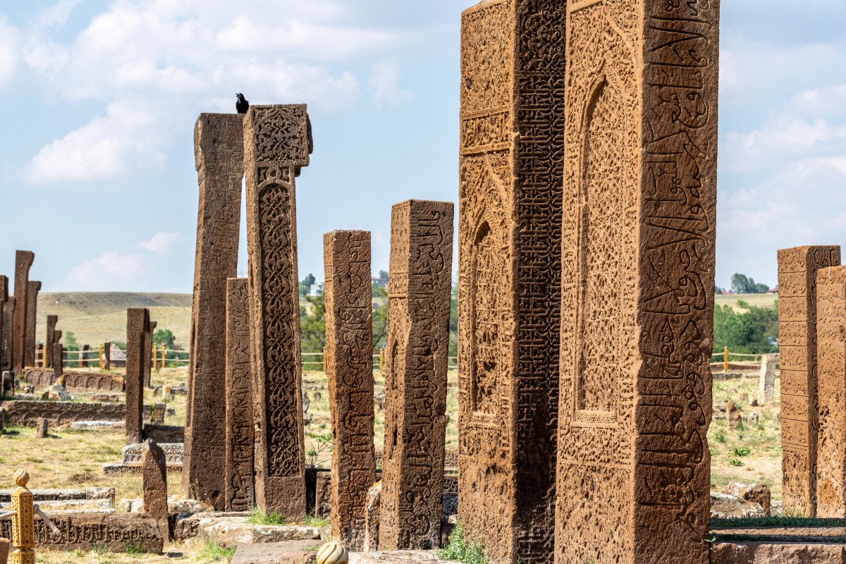 Après un arrêt pour visiter une charmante petite mosquée qui n’est pas sur les guides, nos étapes suivantes sont consacrées au patrimoine moyenâgeux: tout d’abord le cimetière de Ahlat dont les milliers de tombes Seljuk datant d’après le XI siècle, sont éparpillées un site immense. 38,74265 N, 42,45917 E .